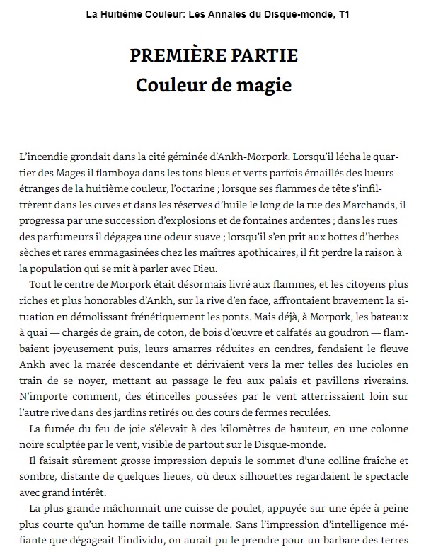 Aujourd’hui, place aux quatre premières pages du roman de fantasy La Huitième Couleur, de Terry Pratchett. L’objectif de l’exercice que je te propose est, comme dans les précédents articles de la rubrique, de mieux comprendre les différentes narrations, comment les écrire, et ce qu’une narration particulière implique comme résultat dans un texte donné.
