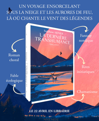 Comme vous le savez, le blog ne me sert pas à faire ma promotion, mais je me fends tout de même d’un petit post de service pour informer de chacune de mes publications. Aujourd’hui, c’est jour de sortie, alors je me permets de vous rappeler l’existence de ma nouvelle duologie de fantasy nordique, La Dernière Transhumance, publiée aux éditions Mnémos. Le tome 1, Vitaux, sort aujourd’hui ; le tome 2, Voraces, paraîtra juste après l’été. Un grand merci d’avance pour votre soutien !
