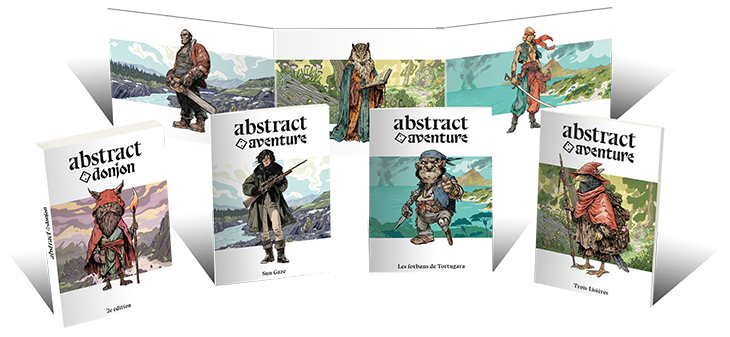 - Les suppléments Abstract Aventure Sun Gaze et Les forbans de Tortugara : Deux autres suppléments sur le même modèle que Trois-Lisières explorent d’autres thèmes, du policier aux frontières du réel dans les paysages glacés canadiens et des aventures de pirates hautes en couleur !